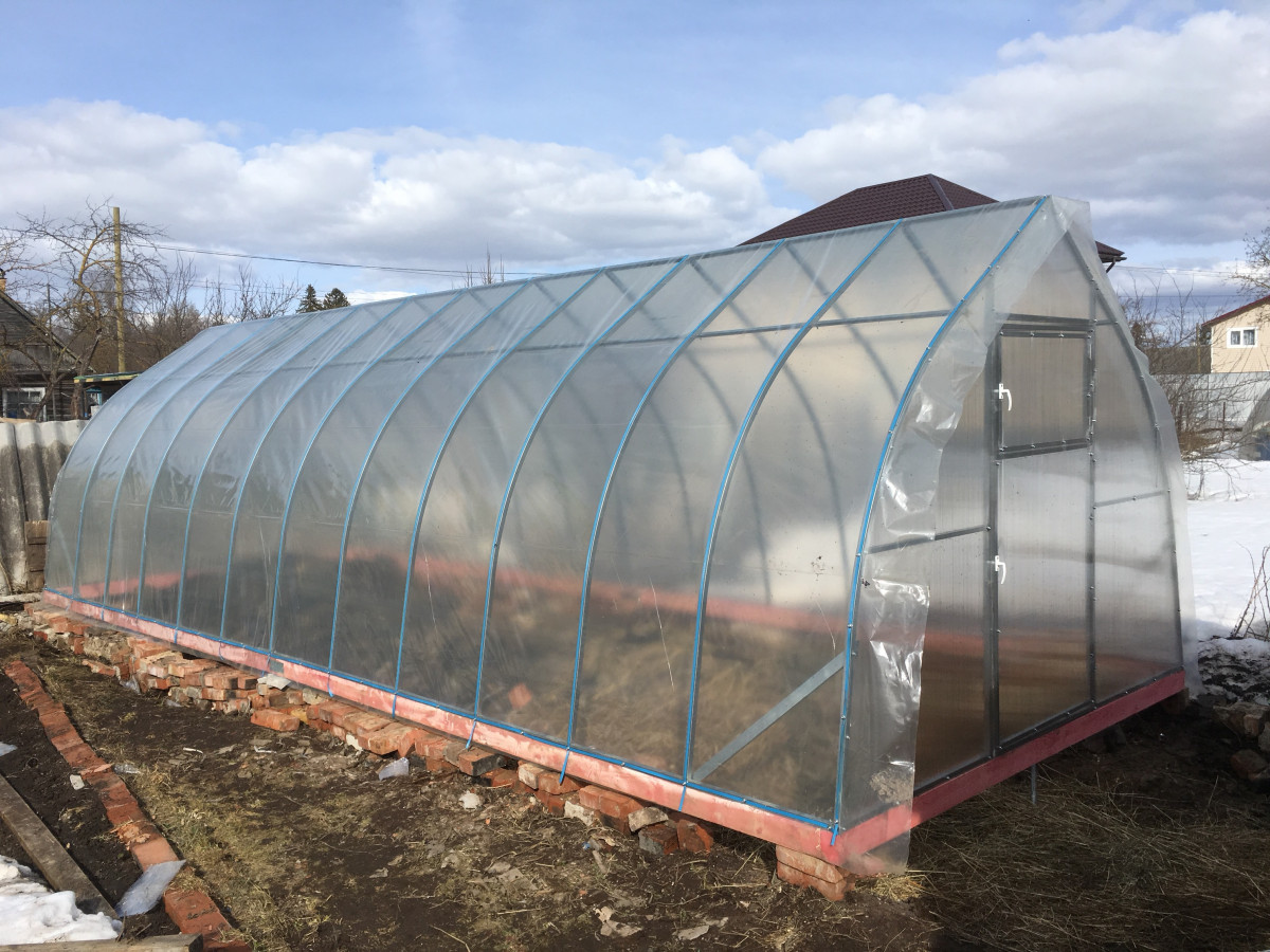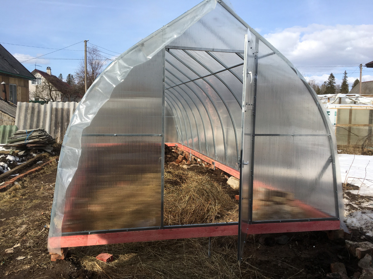 • торцы теплицы обшиты сотовым поликарбонатом толщиной 4 мм