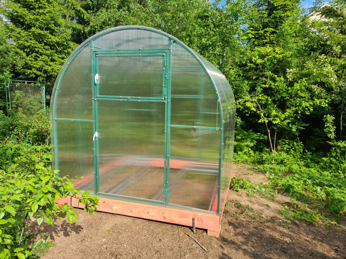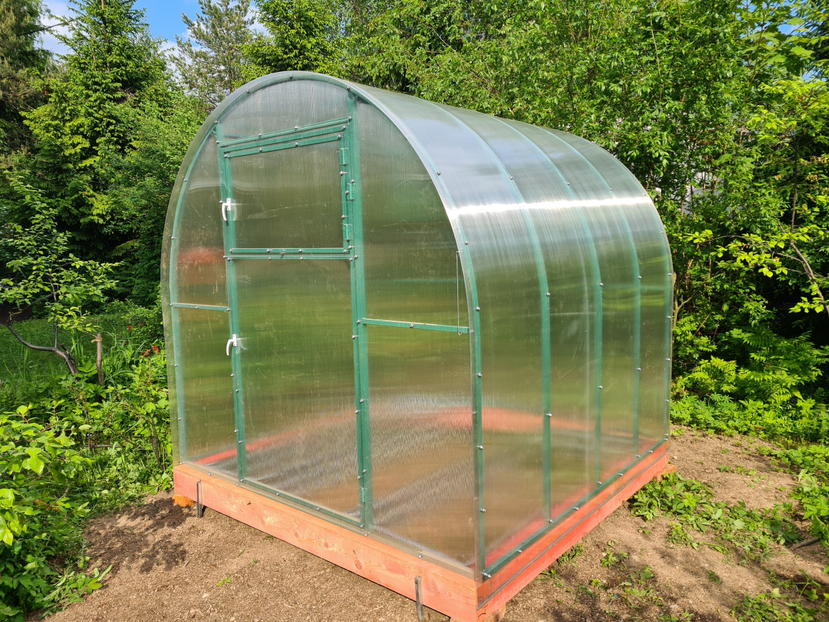 • практически прямые боковые стороны теплицы позволяют использовать пространство по максимуму и выращивать культуры, плотно прилегающие к стенкам