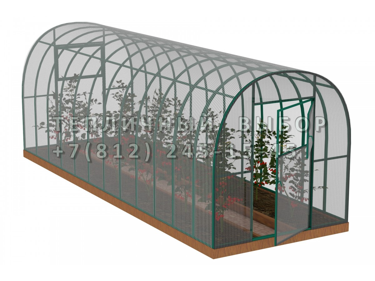Теплица из поликарбоната Усиленная Арочная 2,1х8 h=2 м профиль 25х25 мм Зеленый